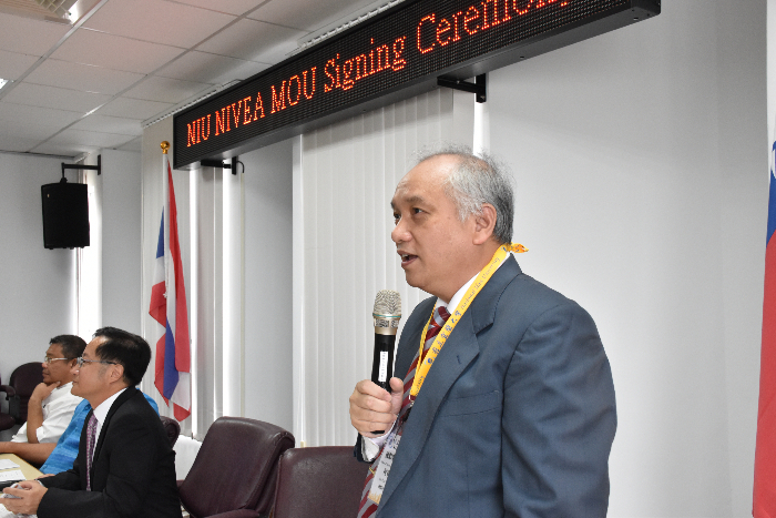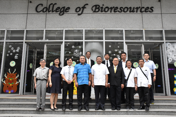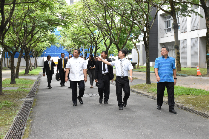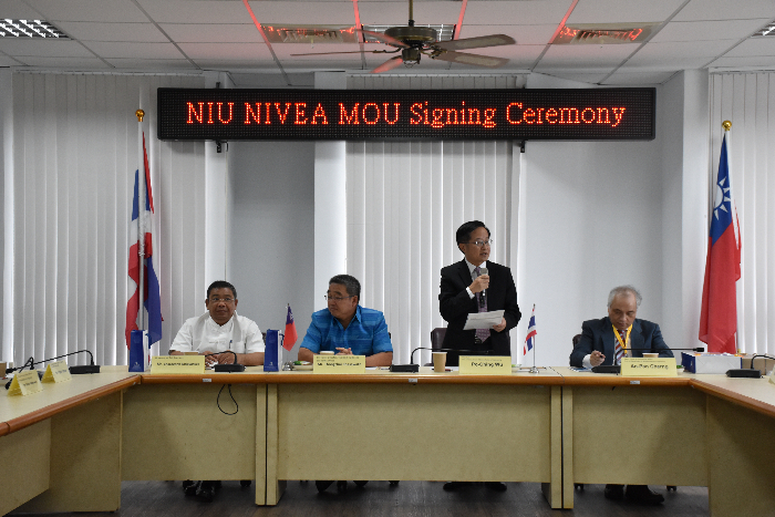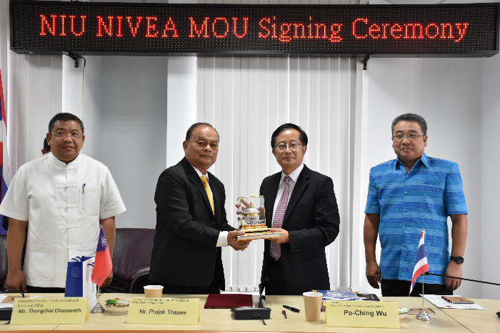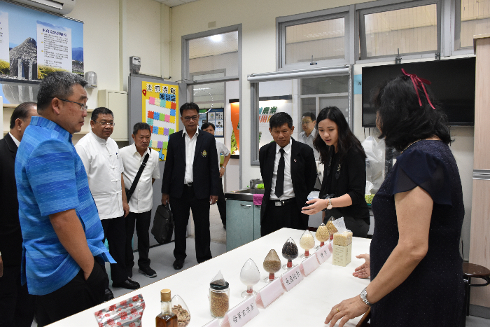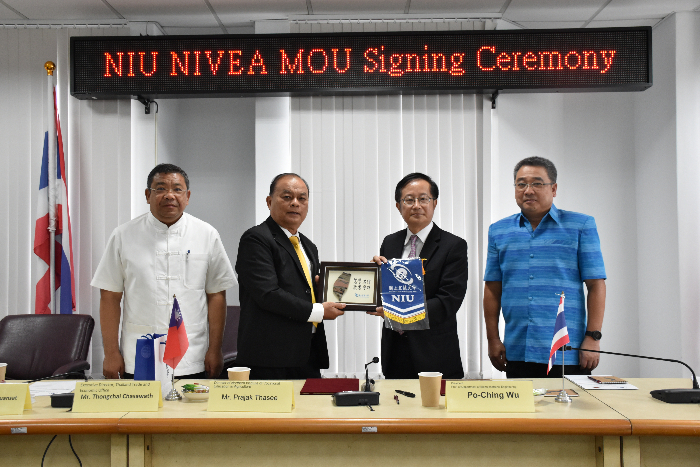 生資院陳威戎院長於座談會中分享本校在農業科技方面卓越的研究及教學表現。簽約儀式暨座談會後,陳院長帶領十位貴賓參訪奈米展示室、檜木展示室、智慧農業展示室、米食展示室和生技生動展示室,並由生動系鄭永祥主任導覽宜大五結校區「三生產學園區」飼養的蛋雞和蜜蜂與蜂產品研究室,讓NIVEA校長Mr. Prajak Thasee等人對宜大的教學軟硬體設備與研究成果印象深刻,希望能儘快促進兩校教師互訪、學生交換,推動實質學術交流活動。
