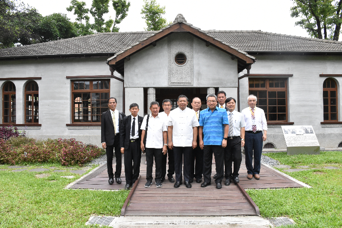 泰國經貿辦事處通才大使(左3)、達府府尹(左2)和NIVEA校長(左1)參觀檜木展示室