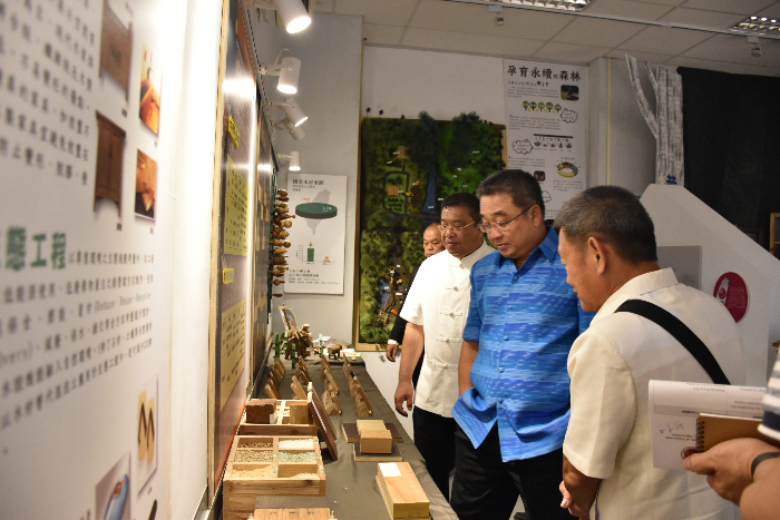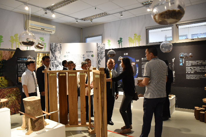 森林暨自然資源學系蔡呈奇主任(右1)導覽檜木展示室