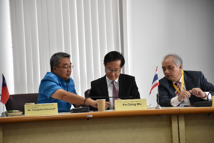 泰國經貿辦事處通才大使、本校吳校長和程國際長(由左至右)討論未來兩校可以合作項目
