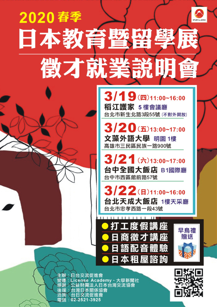 【活動報導】台日交流促進會將於本校辦理2020秋季日本教育留學展暨徵才就業說明會