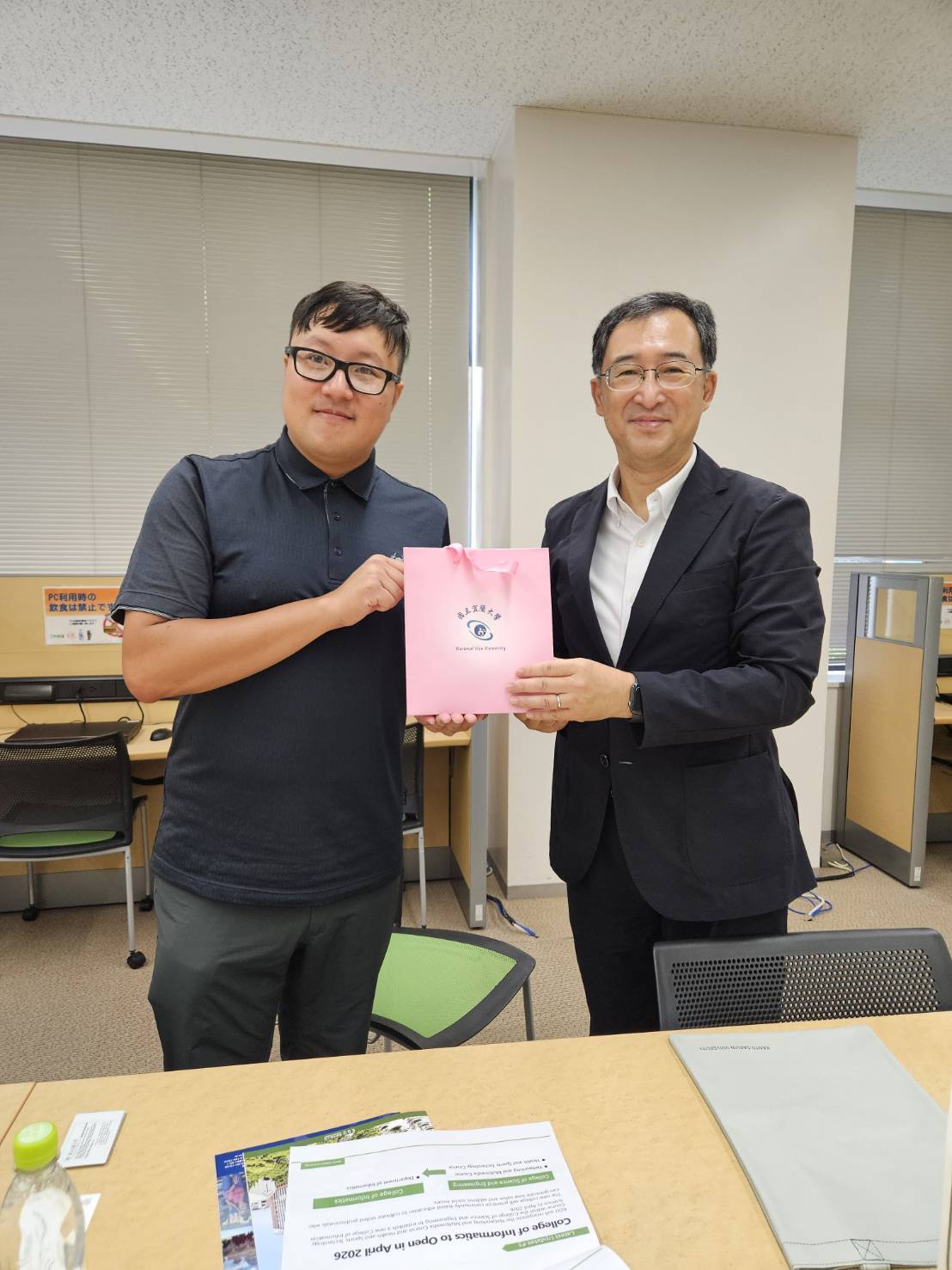 On September 19, 2025, Mr. Liang Chen-Wei, Section Chief of International Exchange at the Office of International Affairs, National Ilan University (NIU), visited Kanto Gakuin University (KGU), a sister university in Japan. He was warmly received by Professor Soichiro Oku, Director of the International Center and faculty member of the College of Architecture and Environmental Design. Both parties engaged in discussions to strengthen their existing collaboration and further consolidate the partnership. In addition to reviewing past academic exchanges and student mobility achievements, the two institutions also explored opportunities to establish dual degree programs in the field of engineering, demonstrating their shared commitment to expanding international academic ties.