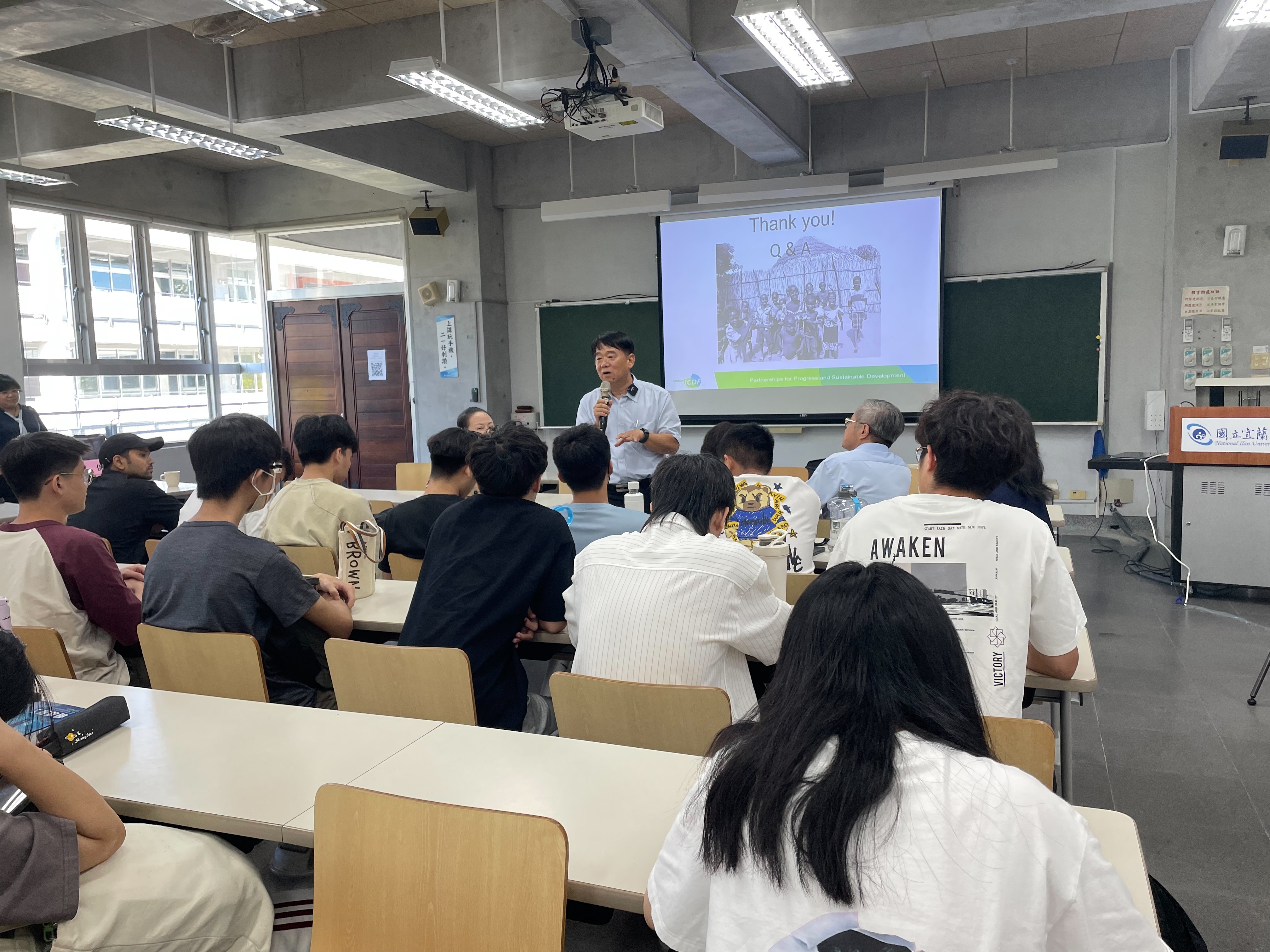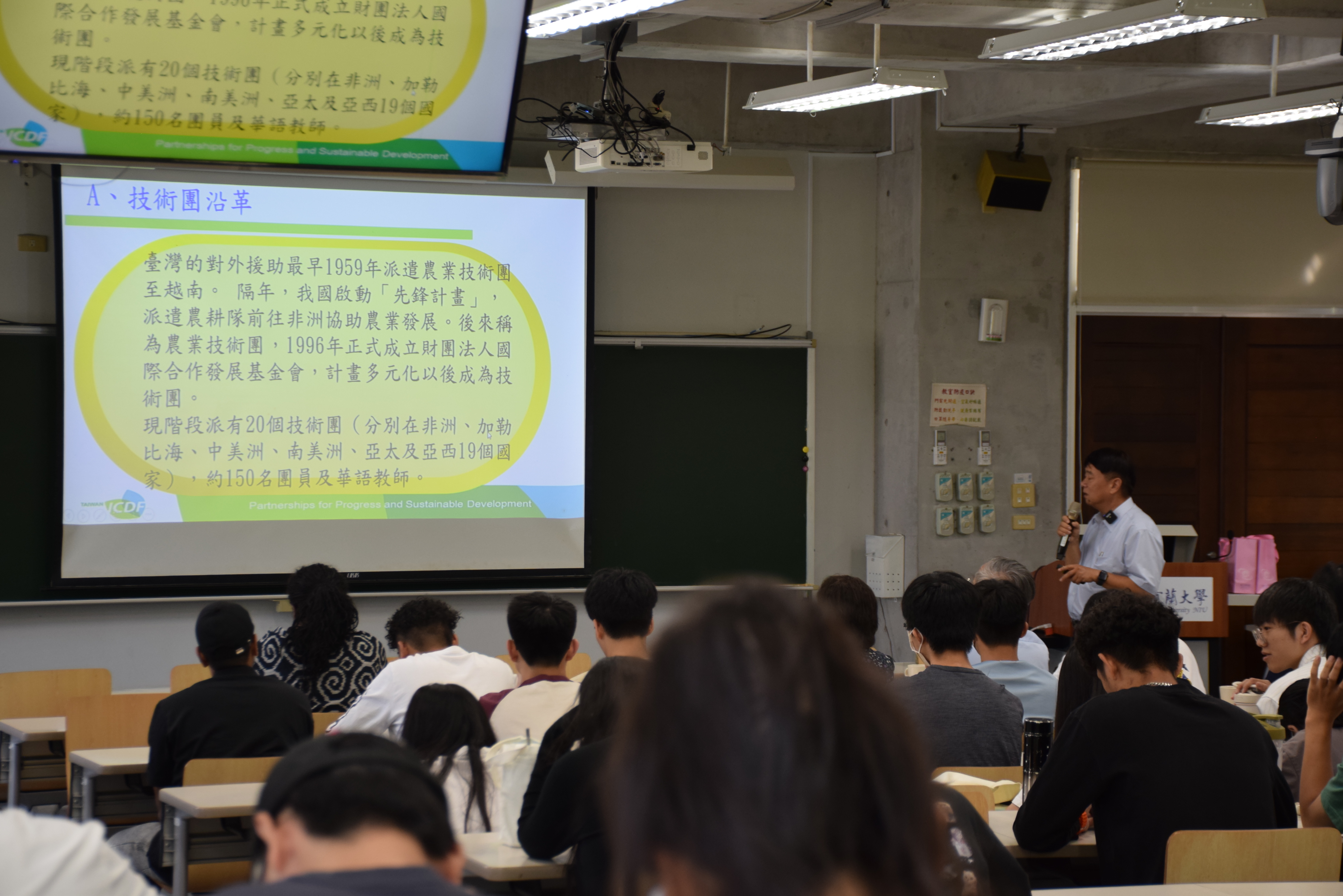 In his talk, Mr. Yeh introduced the mission’s achievements in agriculture, training, and cross-cultural exchange, while also sharing challenges and personal experiences from working abroad. He encouraged students to embrace overseas service as a way to gain meaningful life experiences, strengthen language and intercultural skills, and enhance career development.